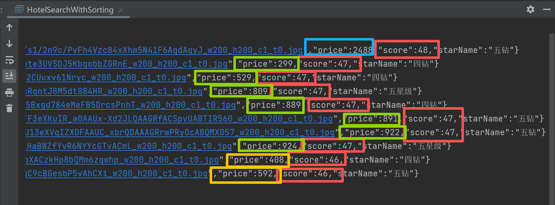 Java代码示例:搜索"上海"的酒店,并按评分降序、价格升序排列