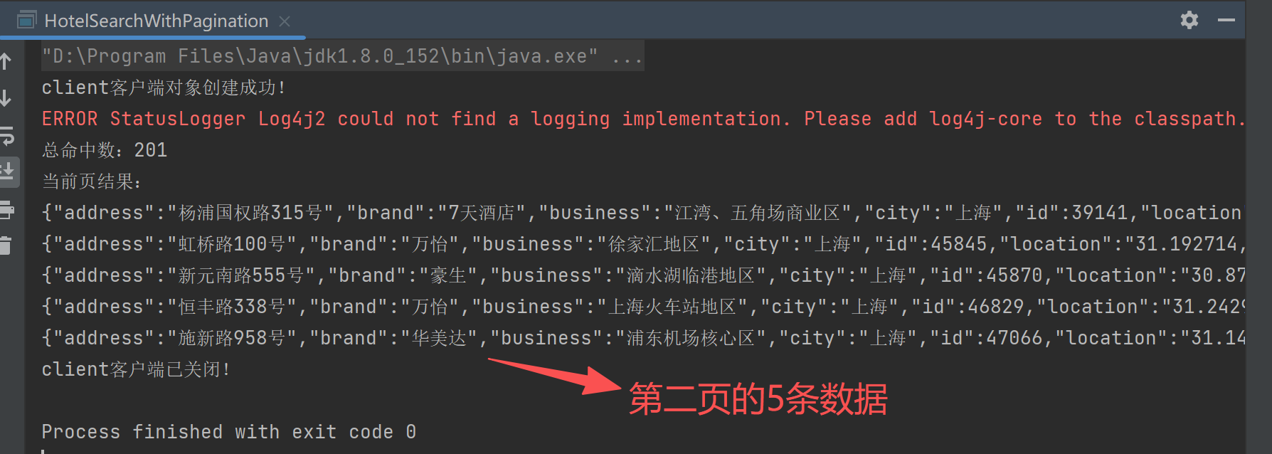 **结果解析:**在实际项目中,建议使用 JSON 反序列化库(如 Jackson)将 hit.getSourceAsString()转换为对应的 Java POJO 对象(如 Hotel),这样更利于后续处理。