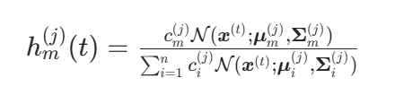 这是基于当前迭代轮数(由公式中的上标j表示),针对某个高斯成分m,用给定的观察值