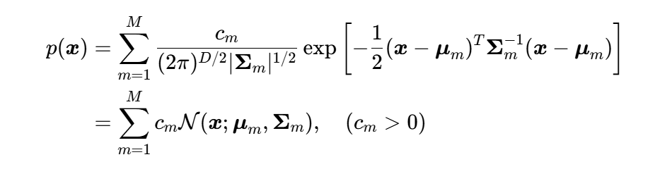 推广到多变量的多元混合高斯分布,其联合概率密度函数可写为