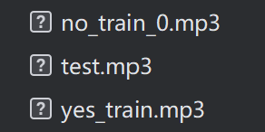"yes_train": "yes_train.mp3", # 已有的"yes"类训练MP3