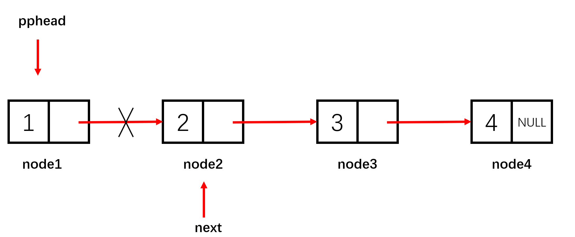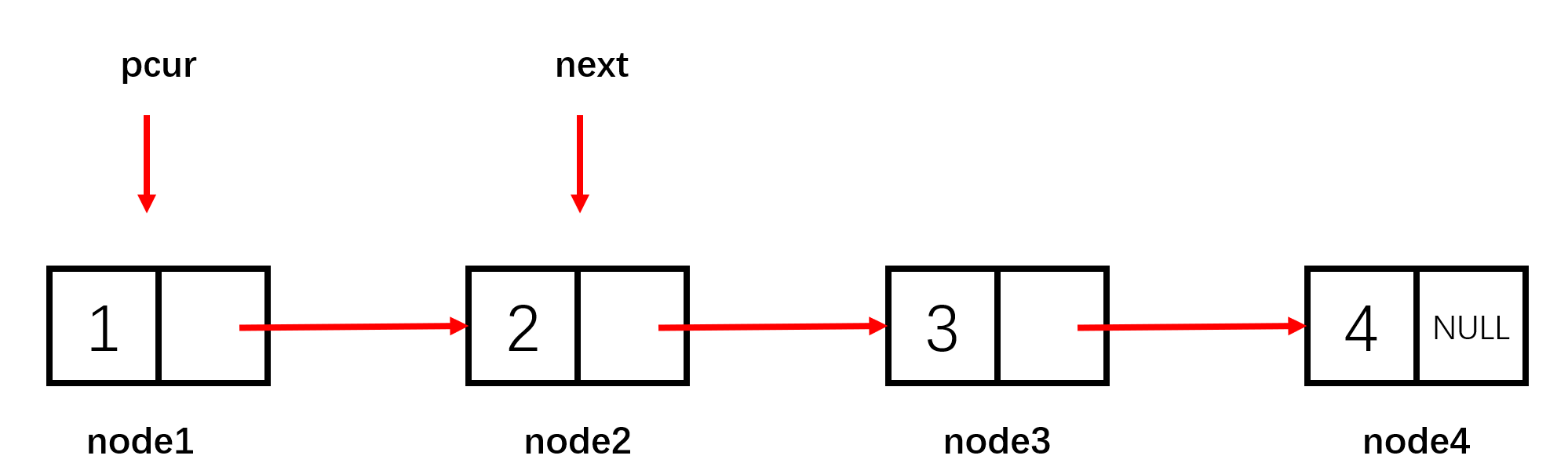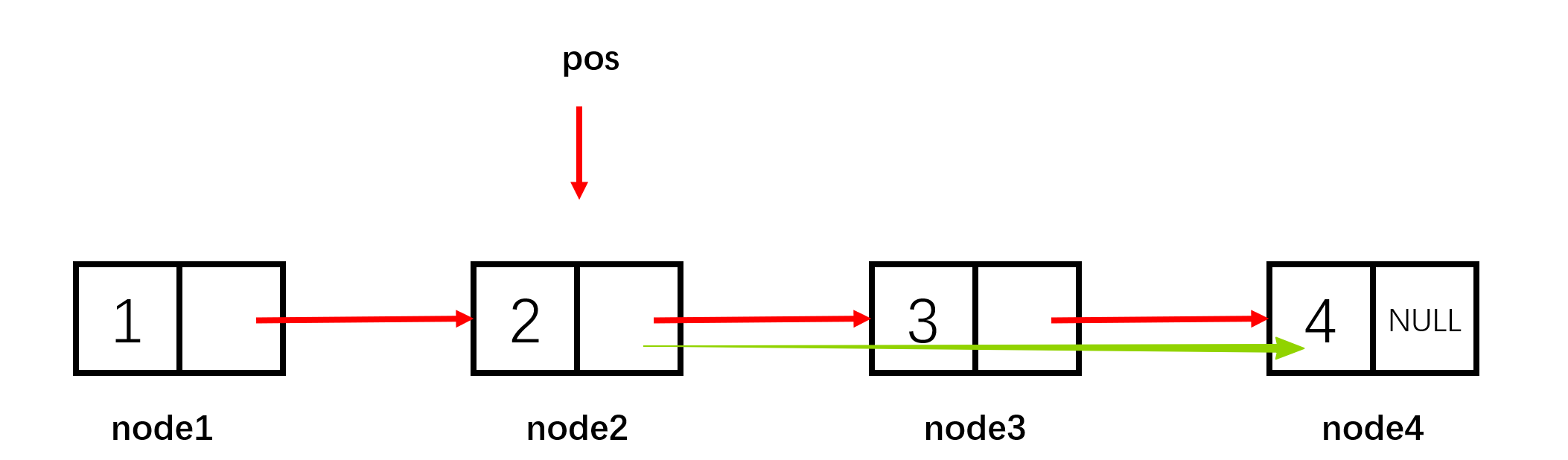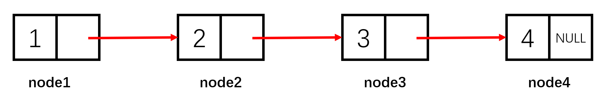 node3->data = 3; node3->next = node4;