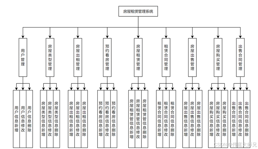 房屋租赁系统的结构,系统实现的功能模块如下图4-1所示。