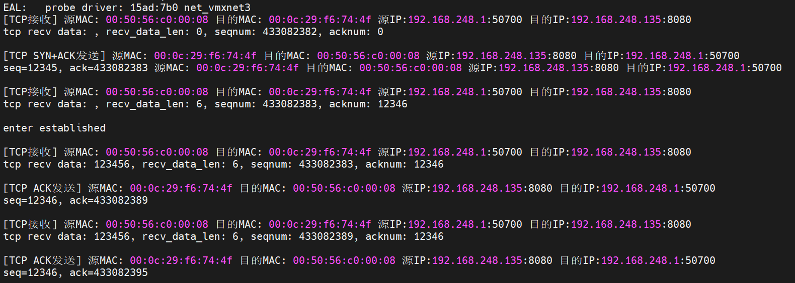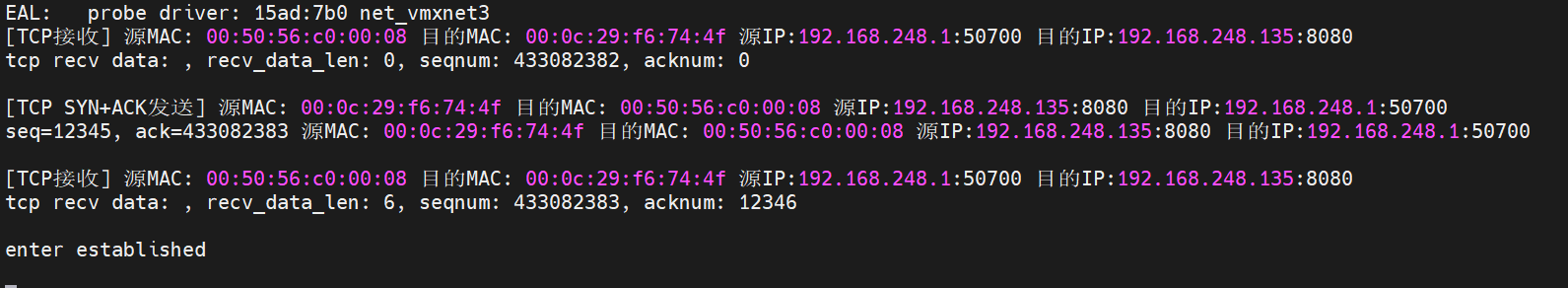 // TCP数据回复(无数据)发送前打印MAC、IP、端口