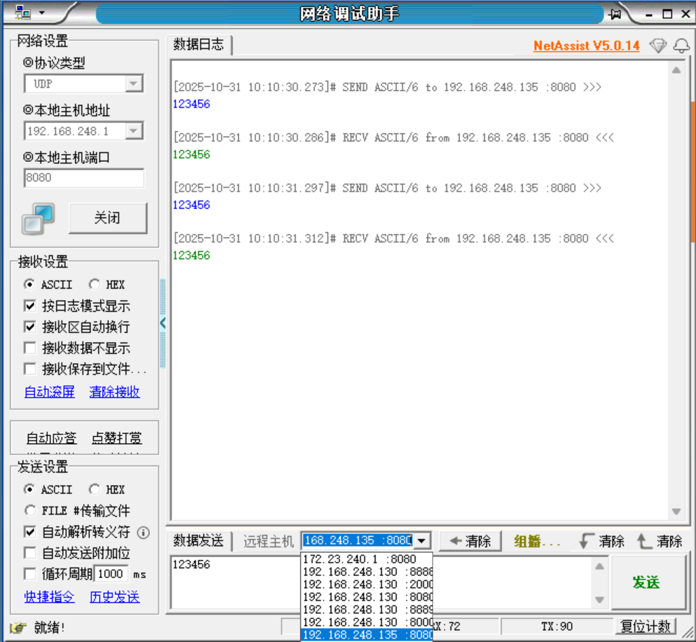 // UDP发送前打印MAC、IP、端口