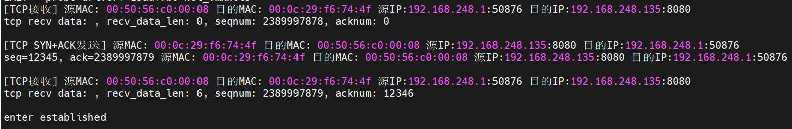 // TCP SYN+ACK发送前打印MAC、IP、端口