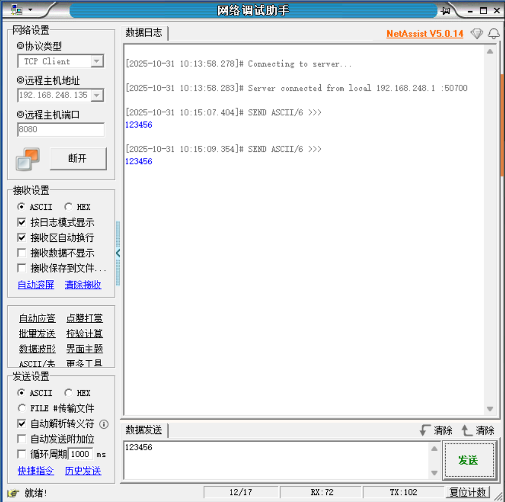 // 新增:TCP接收时打印MAC、IP、端口
