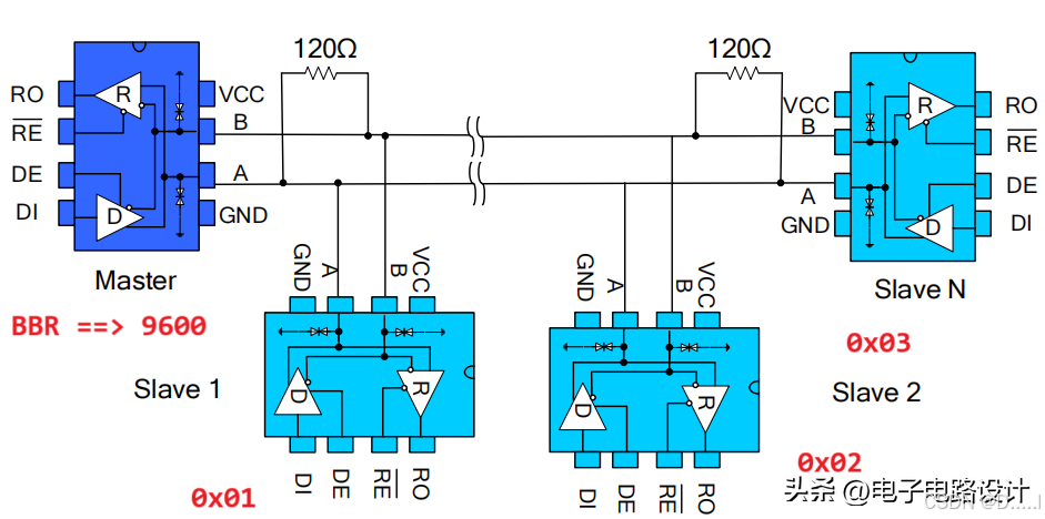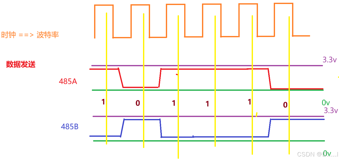 485 发送数据 0,根据以上分析,B 端子电压 - A 端子电压 > 2V ~ 3.3V