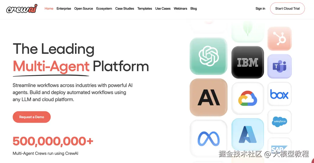 CrewAI 是一个类"团队"模型的 Agent 框架,其最大特色是将 Agent 抽象为不同的"角色"或"职位",通过任务分配实现复杂协作。