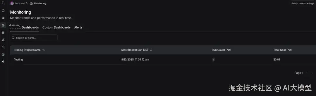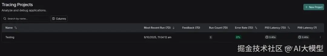 - Tracing Projects (跟踪项目): 跟踪多个项目及其轨迹 (traces) 或运行集 (sets of runs) 。在这里,可以跟踪成本、错误、延迟 (latency) 以及许多其他信息。