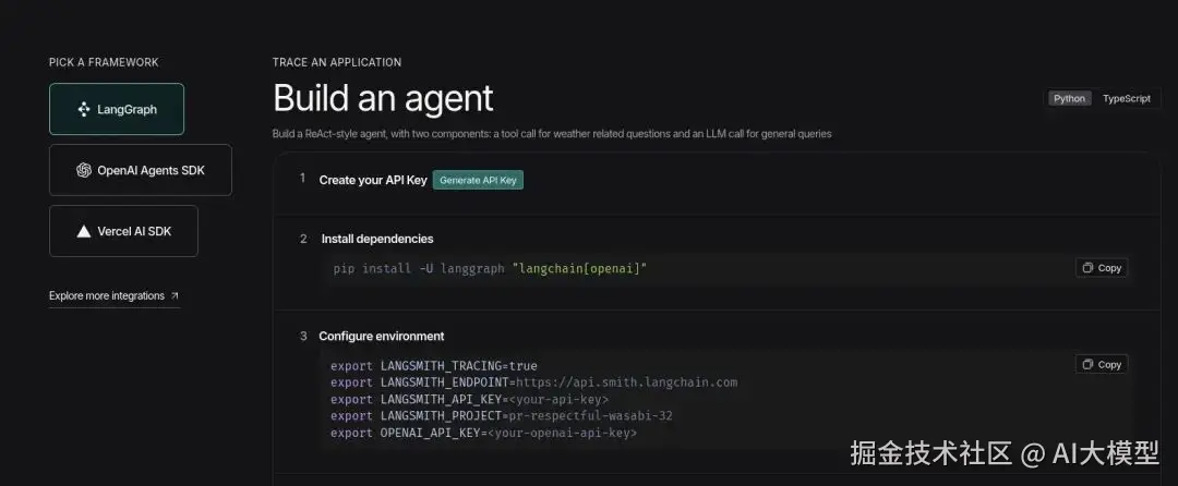 LangSmith 是 LangChain 推出的一个监控和评估平台 。它不依赖于特定框架 ,旨在与任何智能体框架(例如 LangGraph)甚至完全从头构建的智能体配合使用。