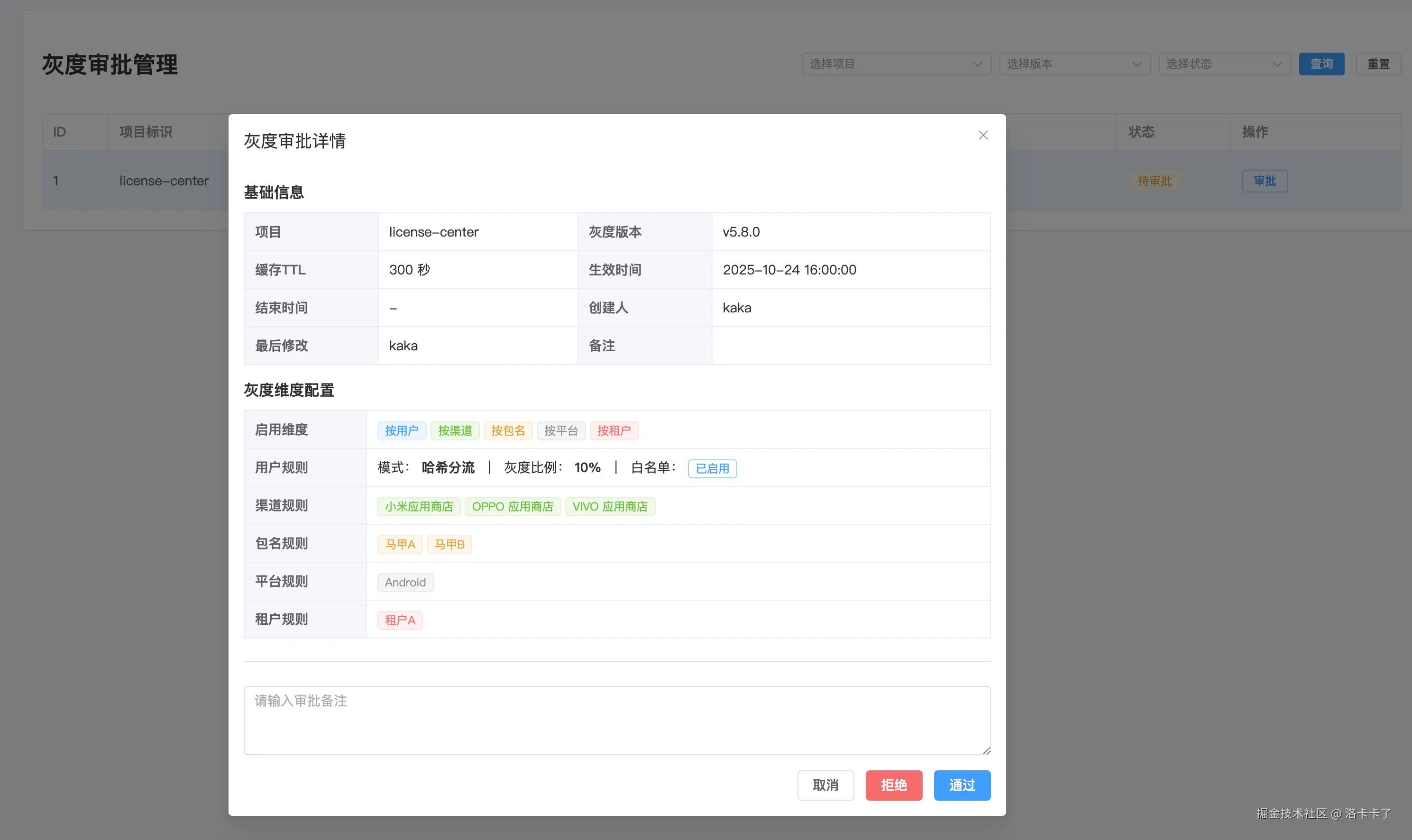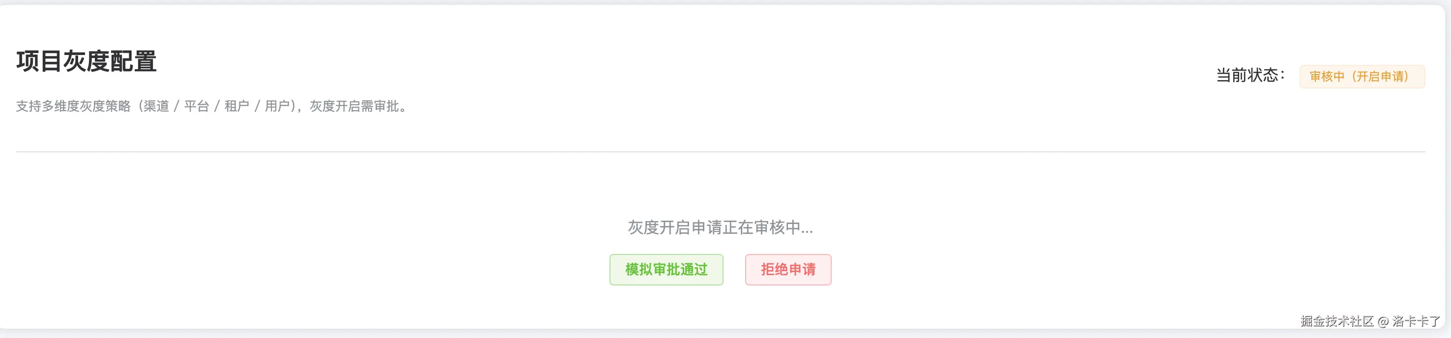 灰度不能随便开,必须先由运营发起申请,再由管理员审批通过后才能真正启用。