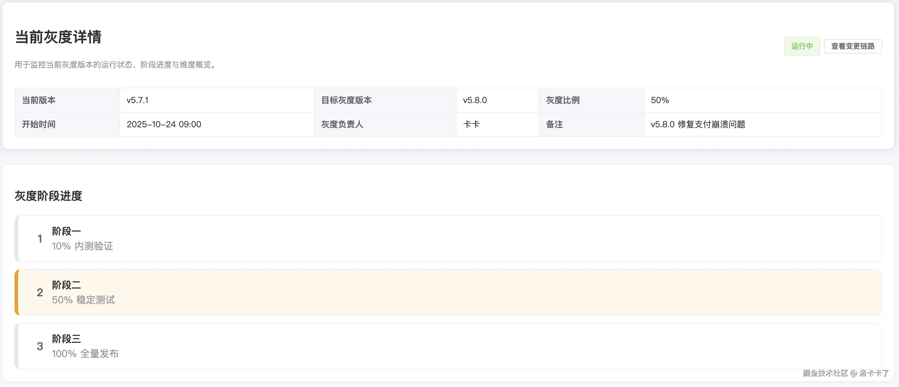 那时候灰度策略、放量节奏、用户分组、回滚机制,全都已经做得很完善,甚至还有配套的数据监控面板。