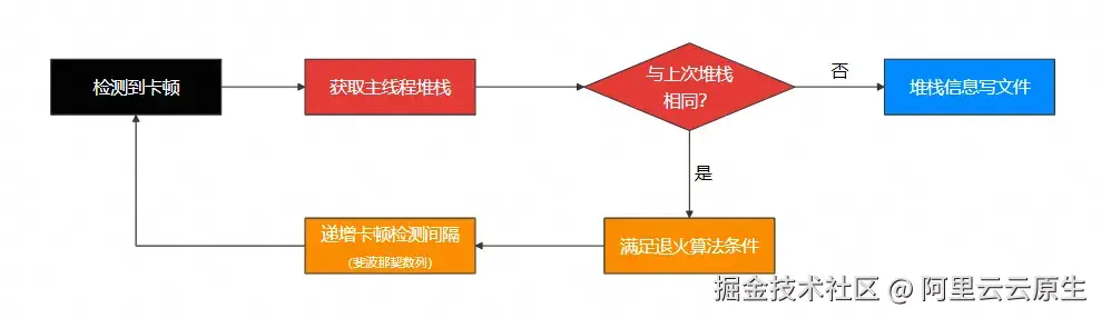 - 相同:跳过,并按照斐波那契数列把检测时间递增,直到没有卡顿或卡顿堆栈不同
