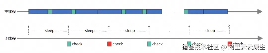 定时派发任务:子线程定期向主线程派发一个简单的任务,并设置一个等待标记。