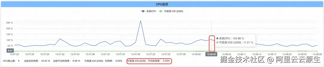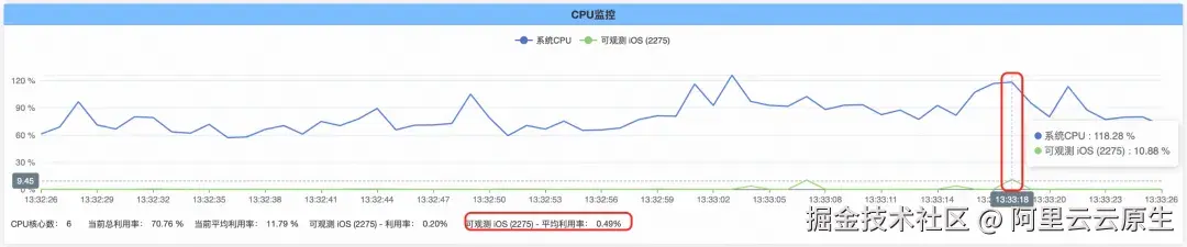 在卡顿监控开启情况下,监控线程的 CPU 占用如下。