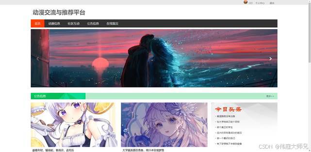 本模块主要是使用者可以通过动漫交流与推荐平台的首页进入该系统。