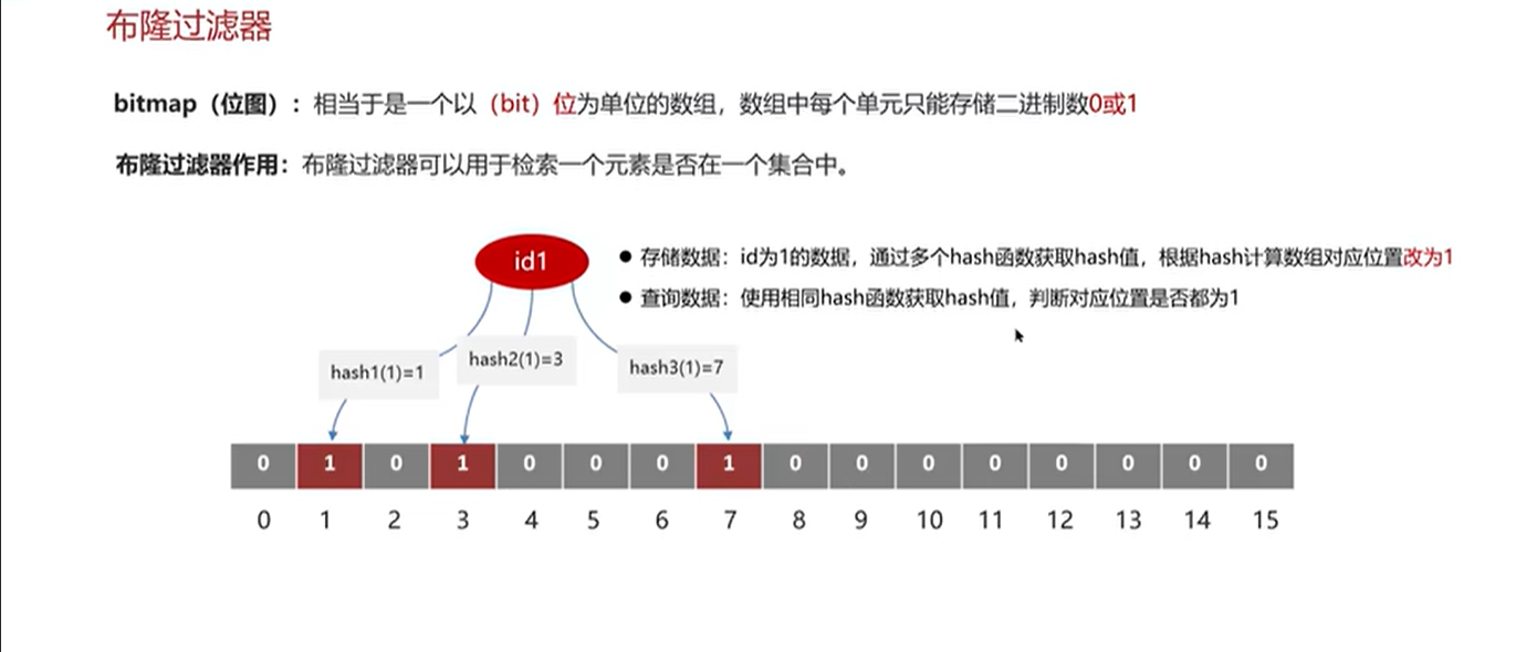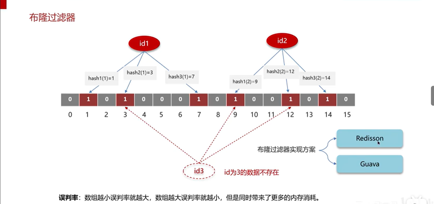 我们一般可以设置这个误判率。大概不会超过5%,其实这个误判是必然存在的,要不就得增加数组的长度,消耗内存,其实已经算是很划算了。5%以内的误判率一般的项目也能接受,不至于高并发下压倒数据库