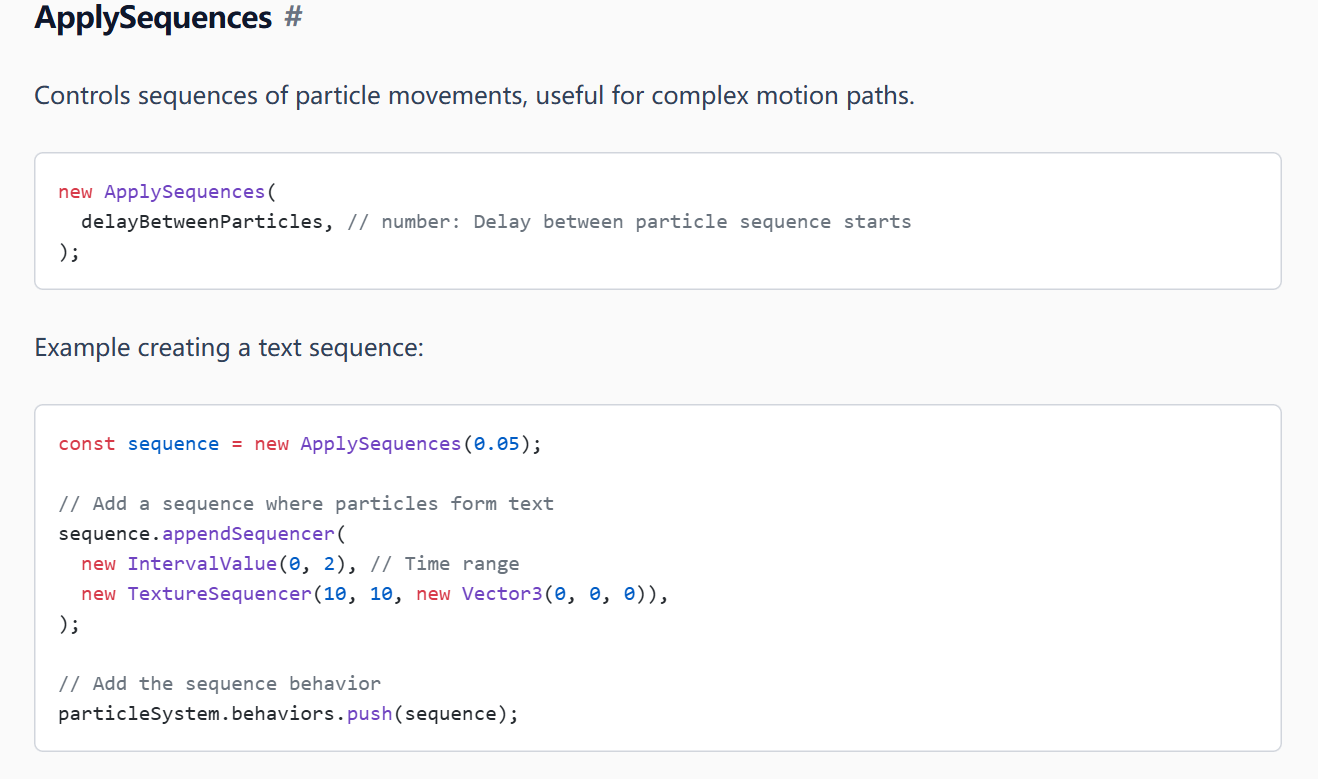 - ApplySequences :作为粒子系统的一种行为(behavior), 负责控制何时应用哪个 TextureSequencer ,管理多个序列器及其应用的时间间隔。