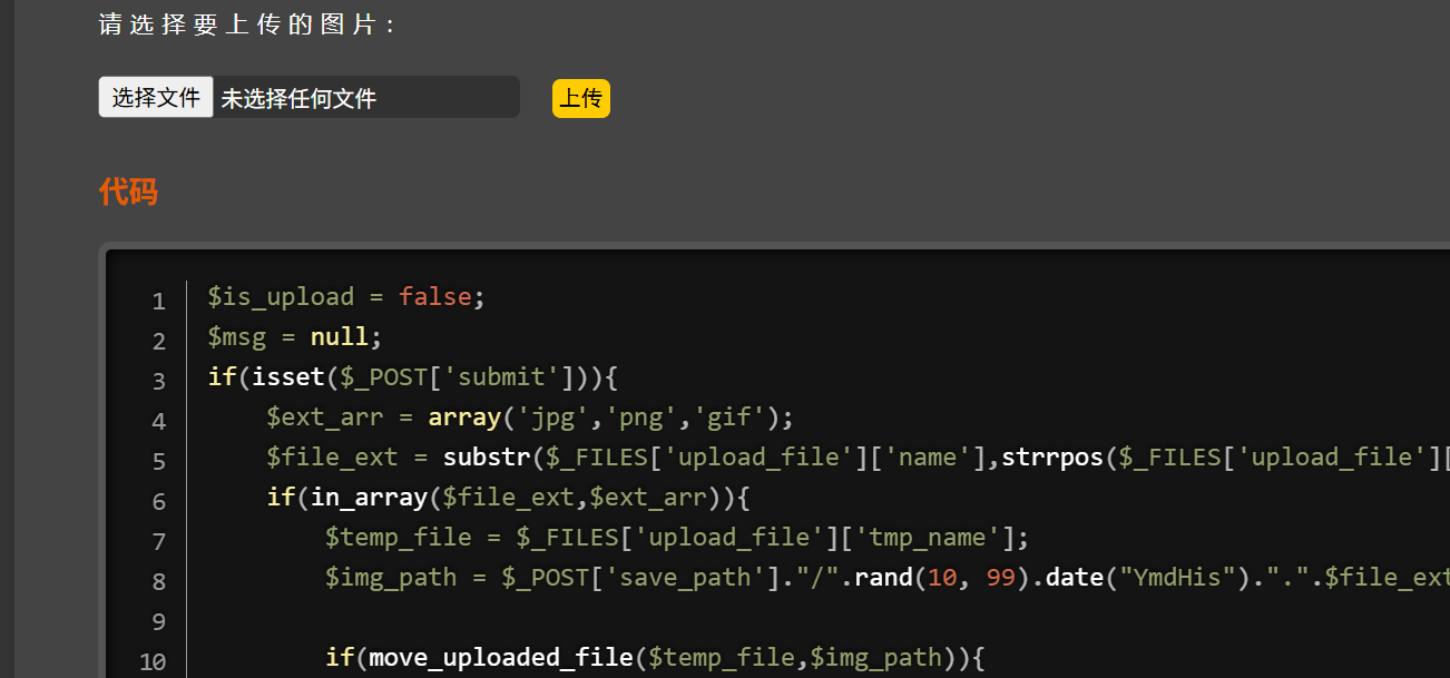 当我们上传web shell文件时,不会先限制php类型文件上传,先利用上面的语句把上传的文件临时存放。再执行下面的if语句进行文件类型的限制和文件名的时间戳。然后执行