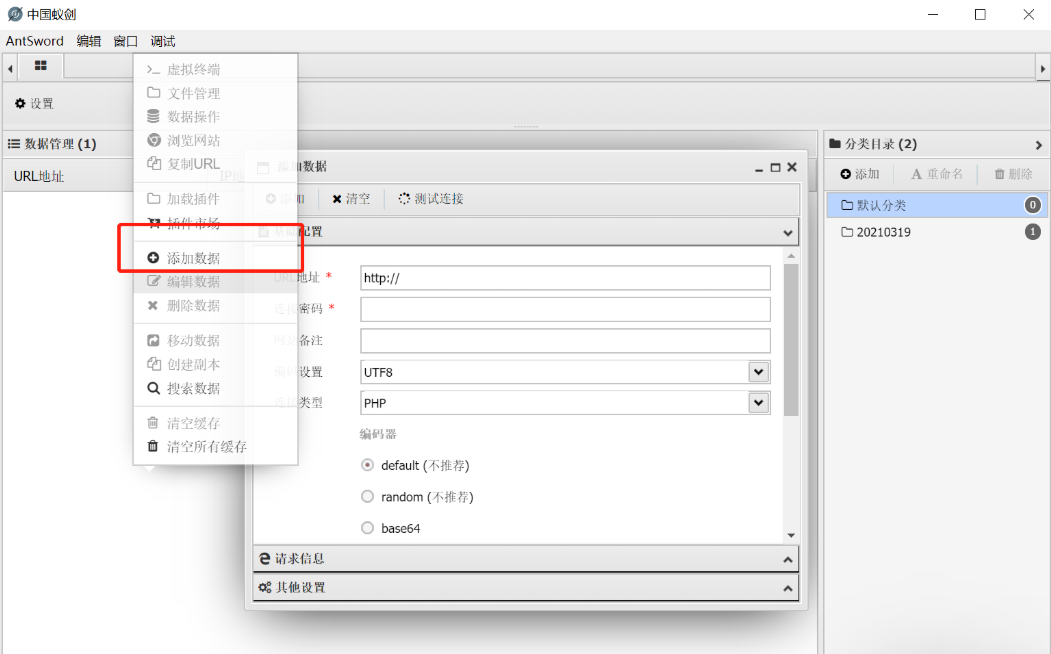 接下来尝试用蚁剑连接