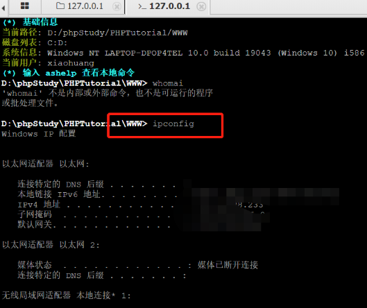 还有可以使用虚拟终端,查看当前网络环境;连接数据库(前提是要知道数据库的账号和密码)。
