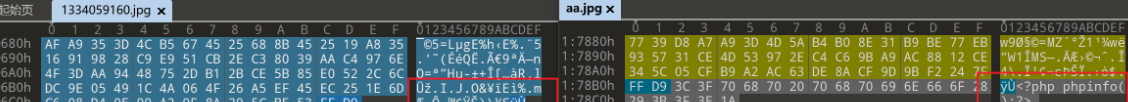 这里的绕过方式就是使用010editor工具分析图片中相同的和不同的部分,可以将一句话图片木马插入到一直不变的区域就可以实现上传一句话木马了