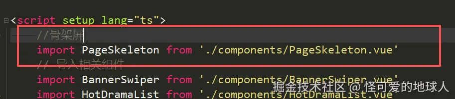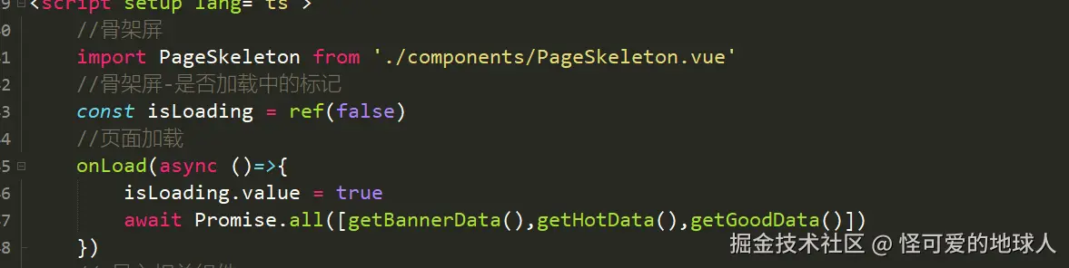 在首页先引入骨架屏文件。 改造首页页面插入骨架屏文件,然后条件显示。