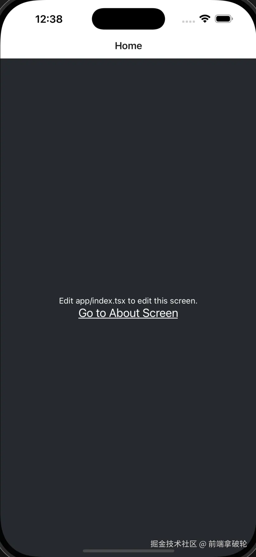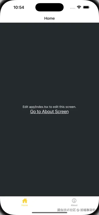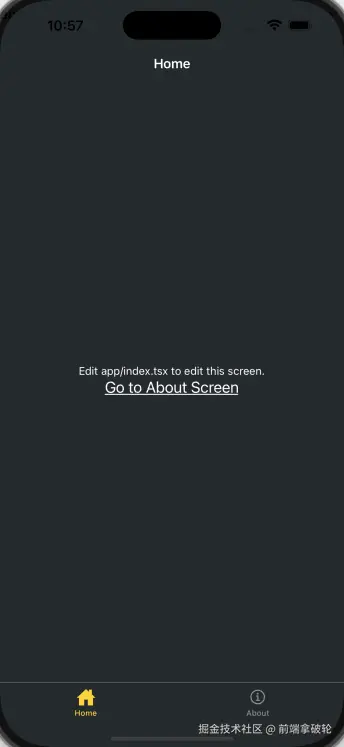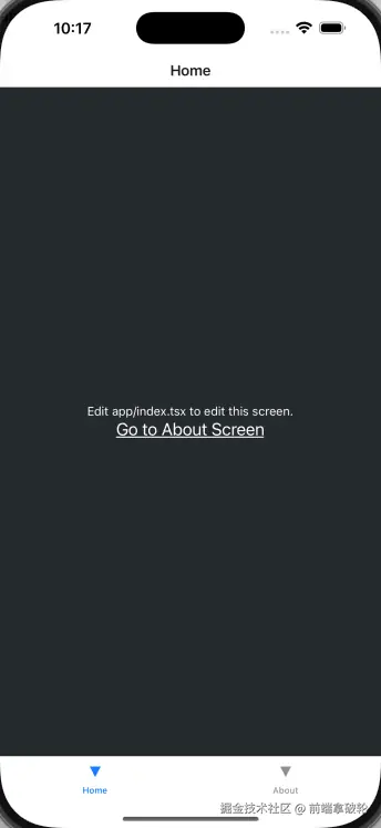 在app/index.tsx中,我们添加一个按钮,当用户点击按钮时,会跳转到/about路径。