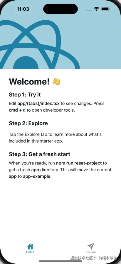 .expo:这是我们在使用pnpm ios的时候自动生成的一个目录,里面存放了一些expo的配置文件。app:这是我们的应用程序代码,包括UI和业务逻辑,类似于我们在Web开发中常用的src目录。assets:存放应用程序的静态资源,比如图片、字体等。components:存放组件的文件夹,不解释。constants:常量,不解释。hooks:存放react的hooks。scripts:存放我们自定义的脚本文件,项目创建时自带一个reset-project的脚本,可以将初始的项目代码重置为空白。app.json:这是RN应用的配置文件,配置在不同平台上应用的基础信息。- 其他:常见的项目配置文件,不解释。