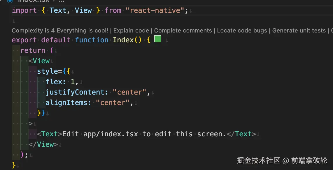 我们可以看到在app/index.tsx文件中,,有一个简单的React函数式组件。