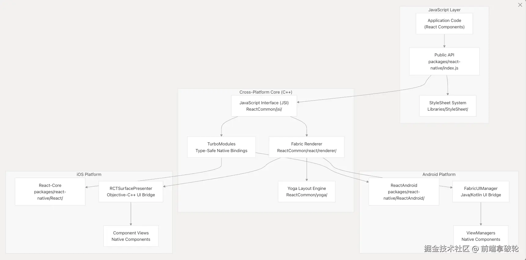 在设计理念上,React Native遵循分层架构,将JavaScript应用程序代码,跨平台的C++渲染基础设施和基于特定平台的本地实现之间的关注点分开。真正实现在React中编写一次,就可以在iOS和Android上生成真正的原生用户界面。