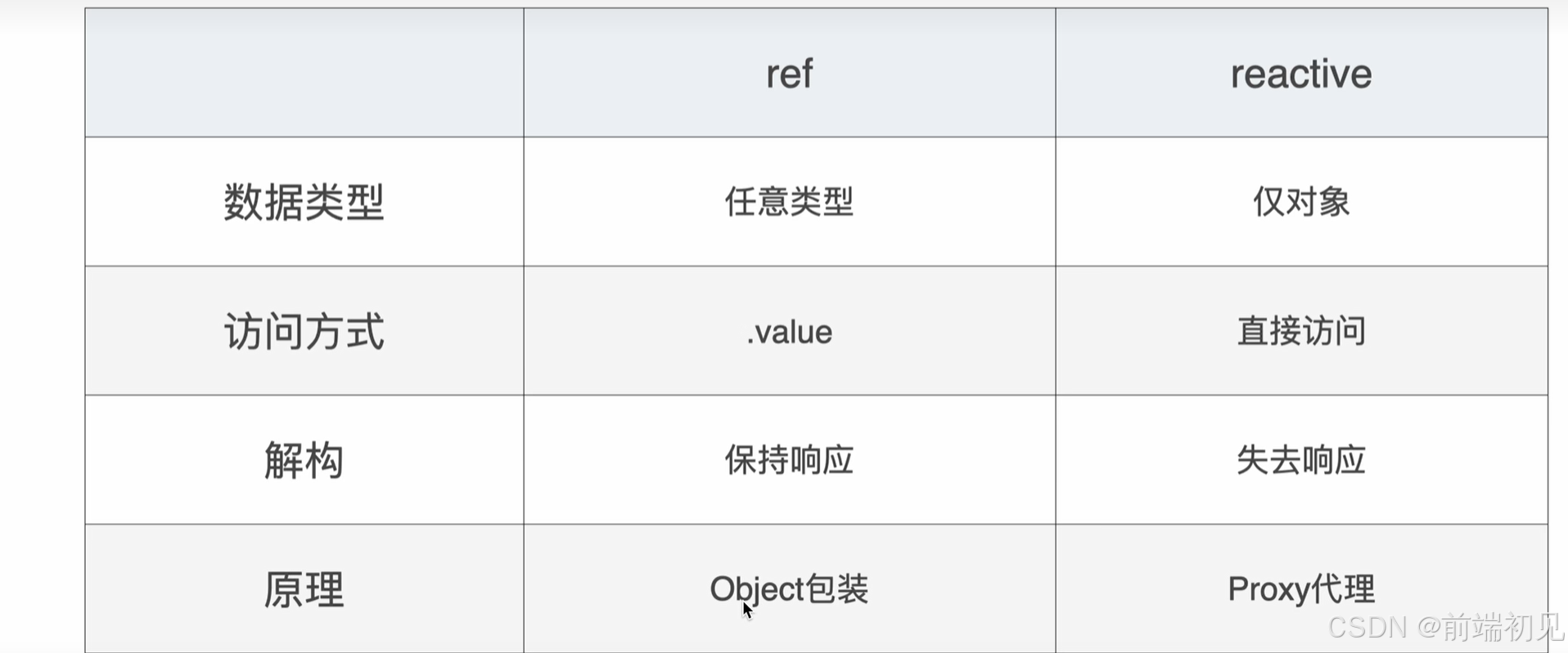 - ref既可以处理基础数据类型的值,也可以处理复杂数据类型的值