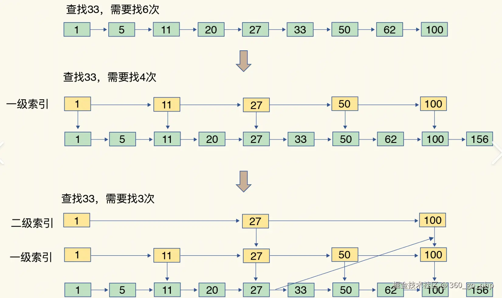- 高效性:跳表在查找时的平均时间复杂度为 O(log N),比普通的链表(O(N))要高效得多。