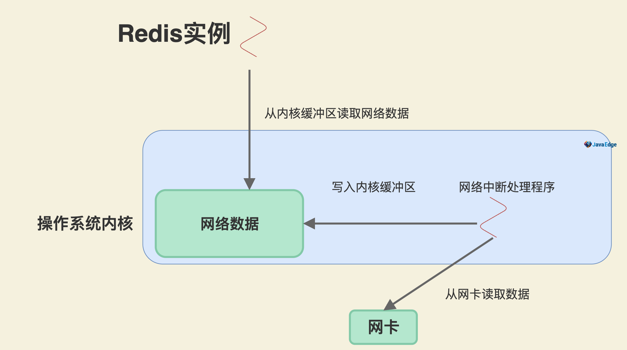 - Redis实例再把数据从内核的内存缓冲区拷贝到自己的内存空间: