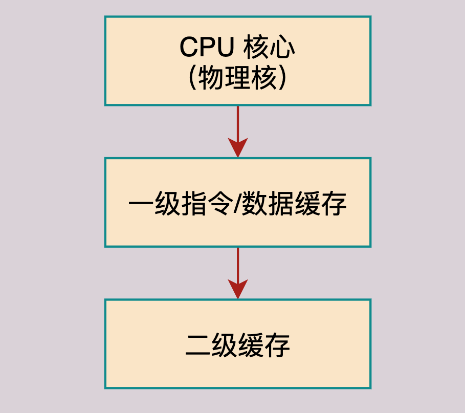 每个物理核都拥有私有的一级缓存(Level 1 cache,简称L1 cache),包括一级指令缓存和一级数据缓存,以及私有的二级缓存(Level 2 cache,简称L2 cache)。
