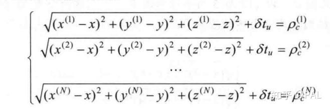 已知每颗卫星的三维坐标 与对应的伪距 ,可以建立如下方程: