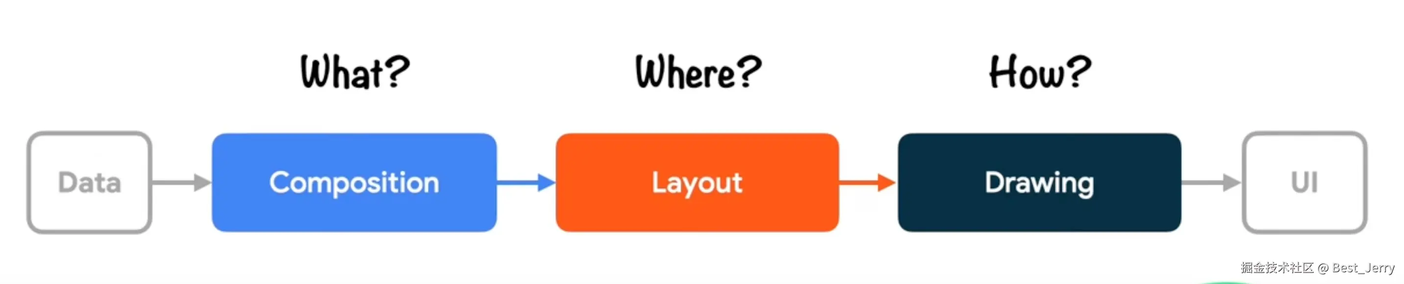 Compose 将数据转换为 UI。这个过程包含三个阶段: