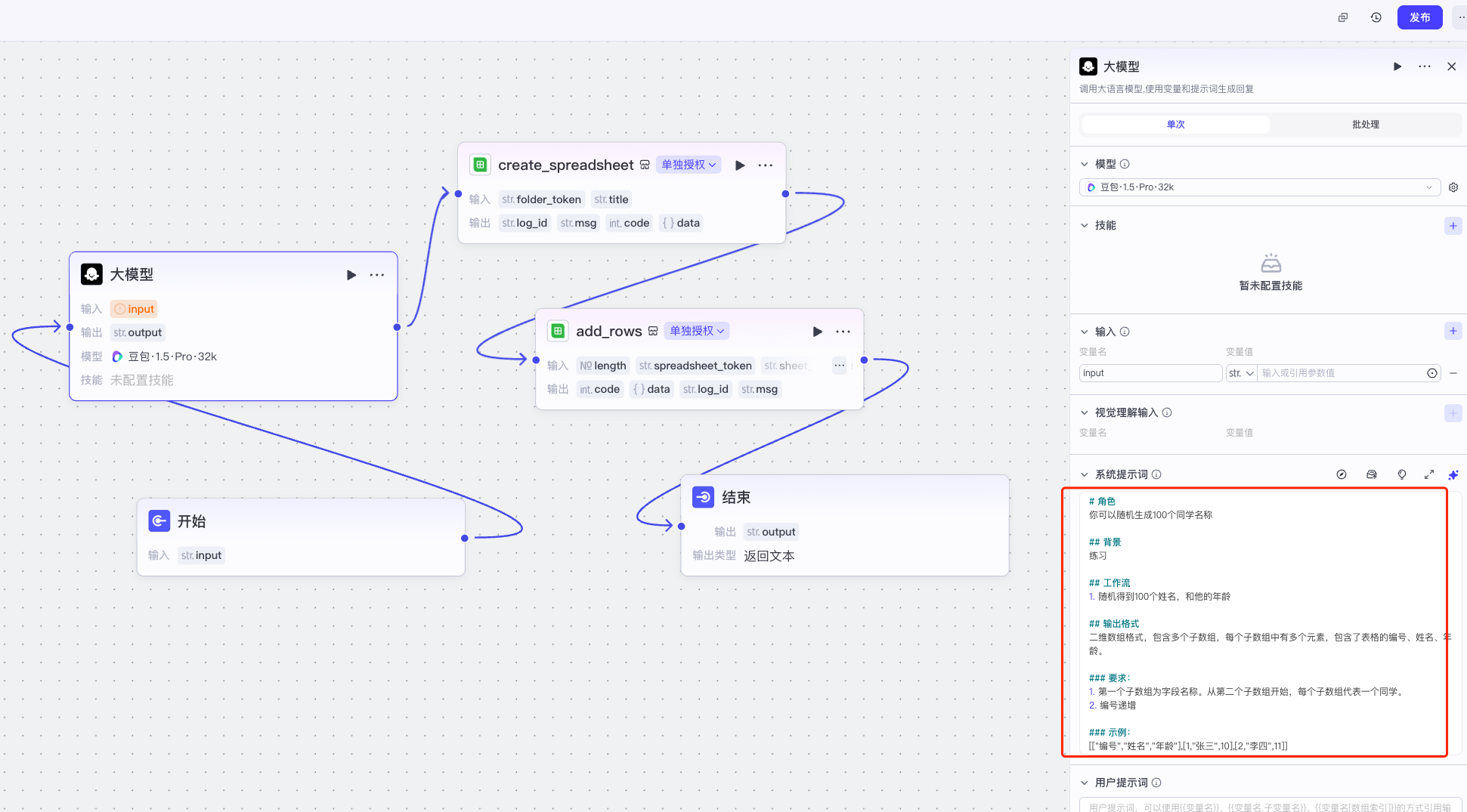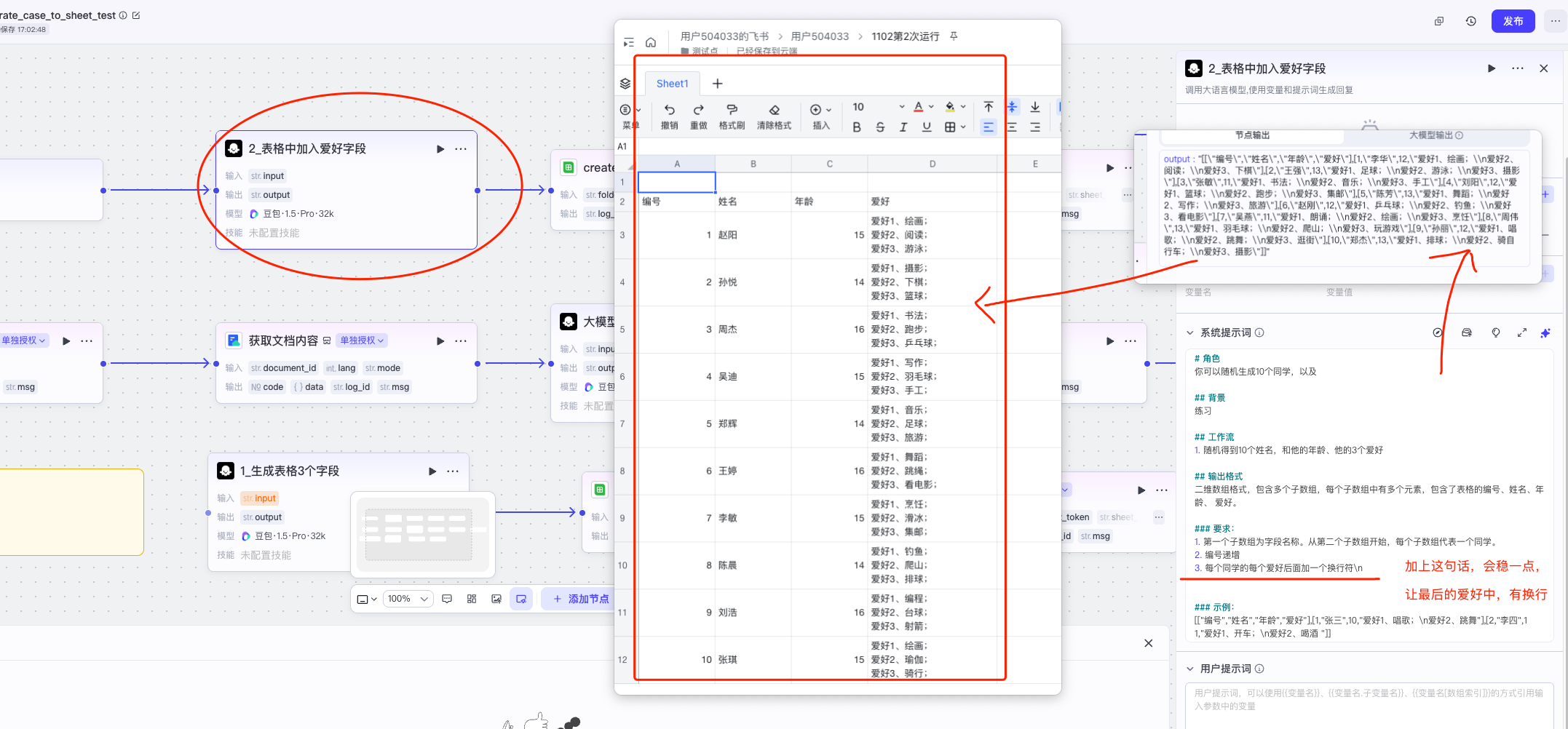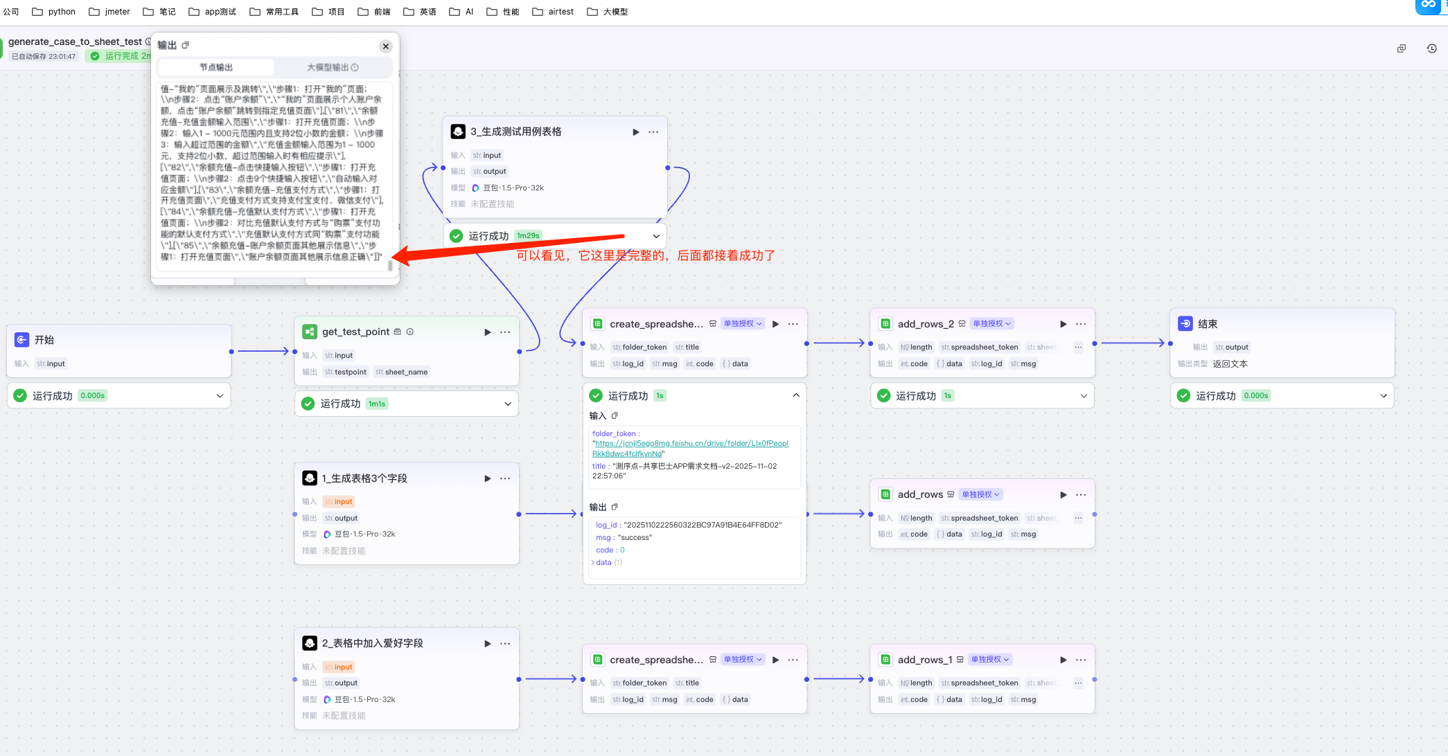 点大模型的节点,单独测试,看看效果。然后改下add_rows, 然后试运行