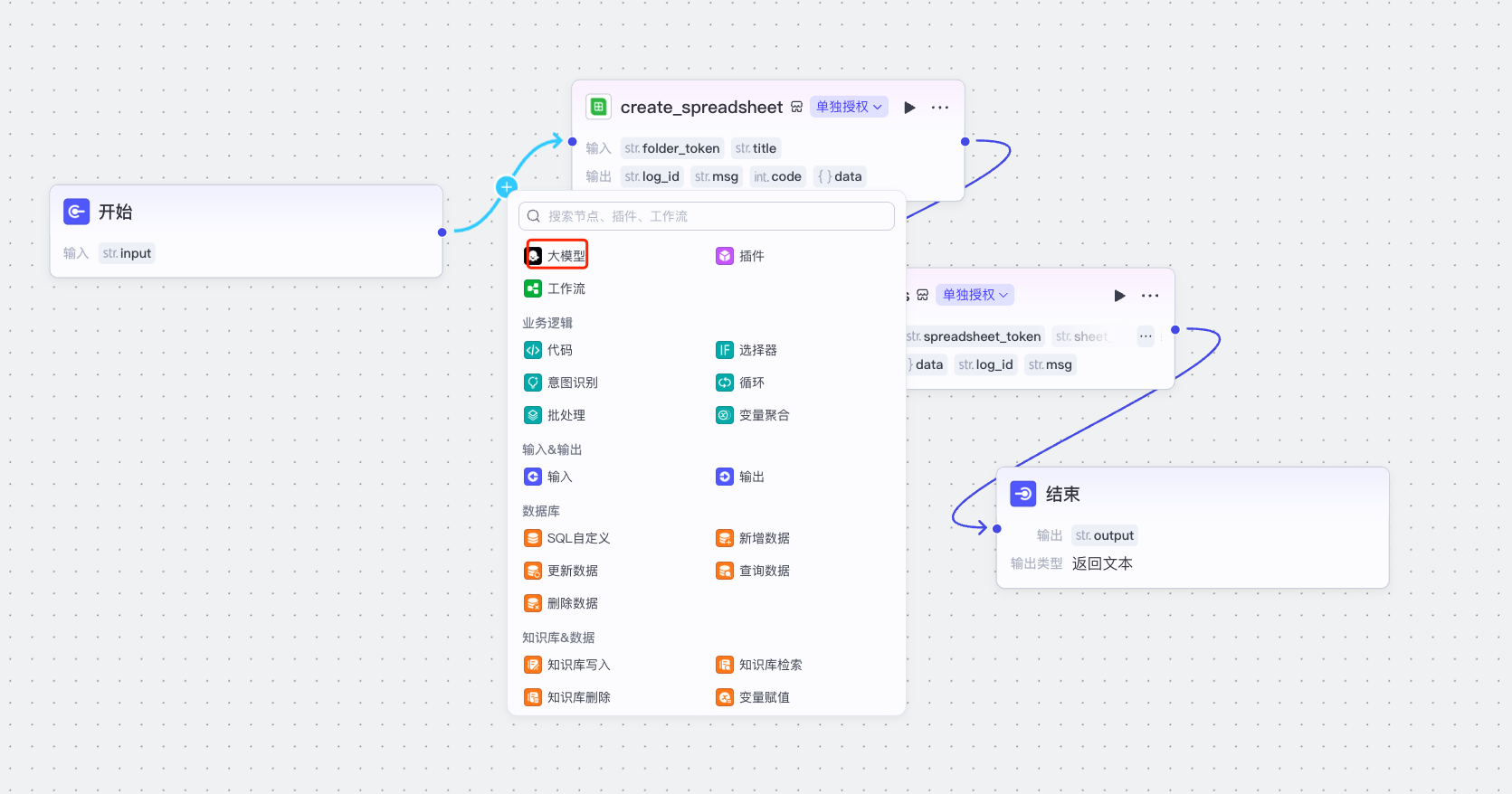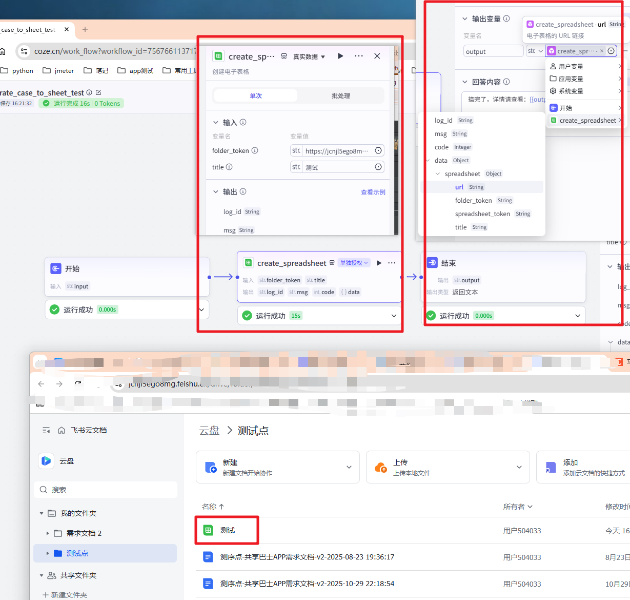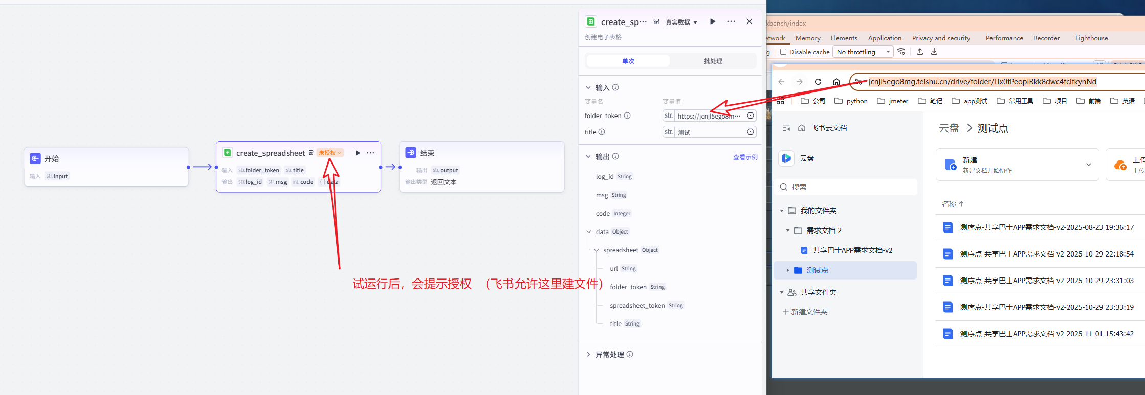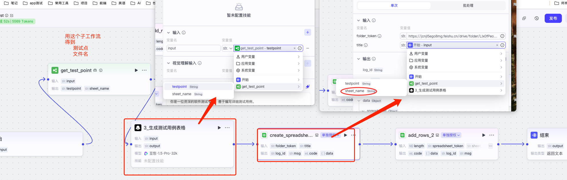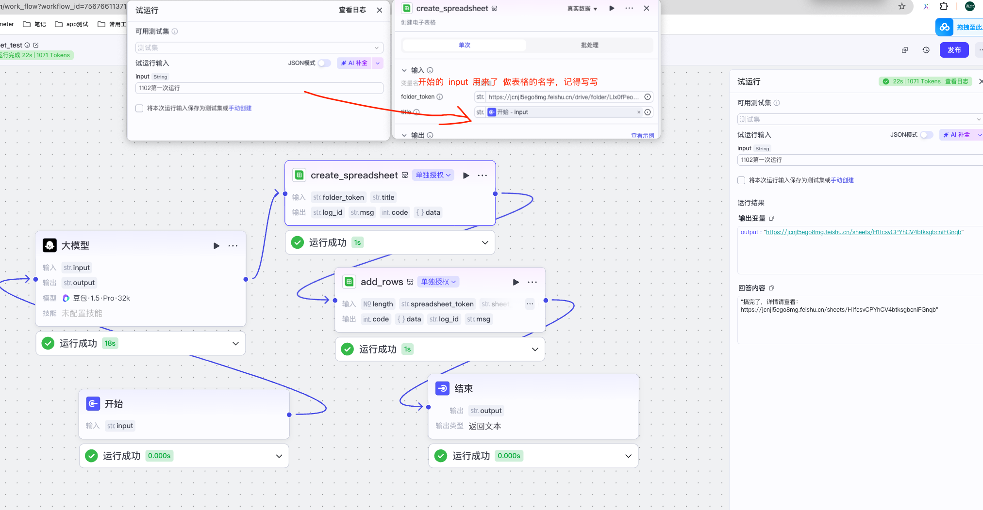 注: 开始节点的input,要给飞书云文档中的需求文档了
