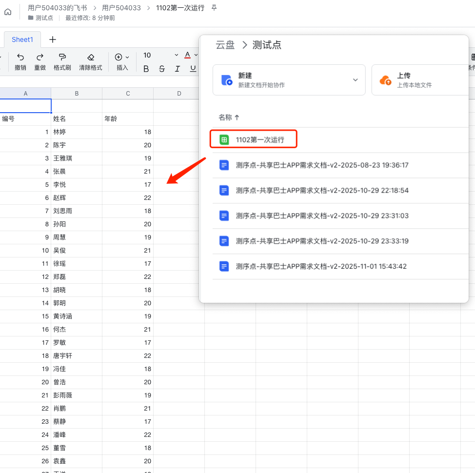 - 功能:可以在飞书云文档下创建一个表格