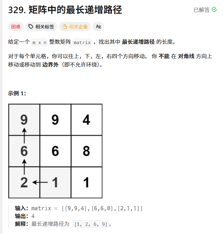 329. 矩阵中的最长递增路径 - 力扣(LeetCode)