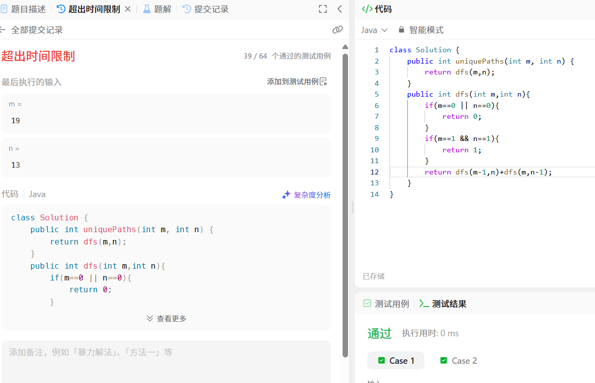 dp=new int[m+1][n+1];