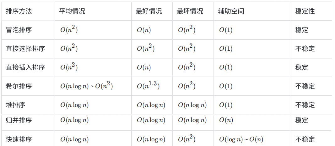 最后我们可以参考一下这个表格,对比每个排序算法
