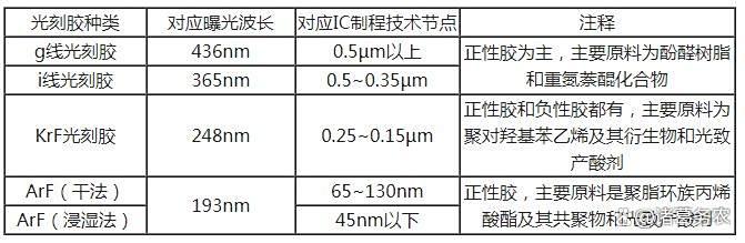 逻辑/存储芯片:55--28nm成熟制程,金属布线、接触孔(南大光电国产胶主战场);14--7nm先进制程,浸没式+多重曝光,需低LWR胶(如南大光电7nm订单)。