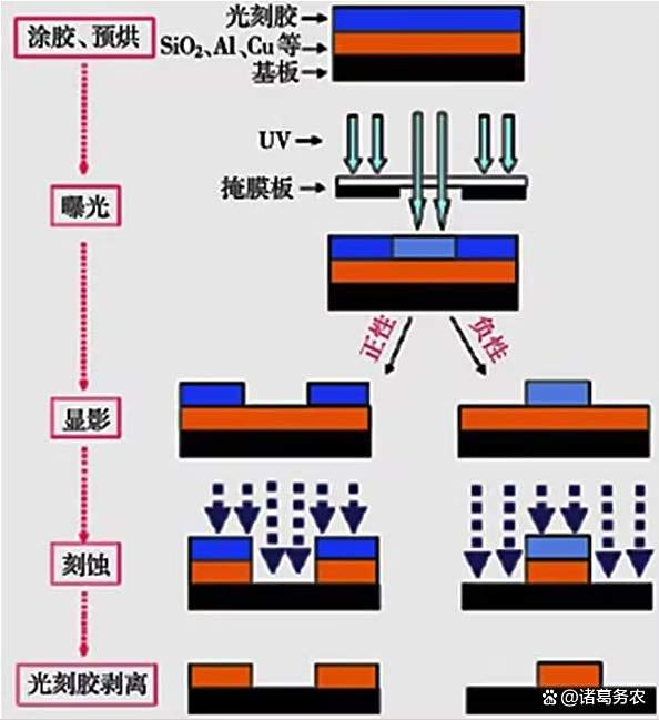 正胶:曝光区溶解,形成凸图形,占主流(如南大光电55nm逻辑芯片认证产品)。