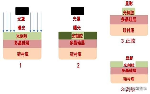 原理:曝光区溶于显影液,非曝光区形成图形。