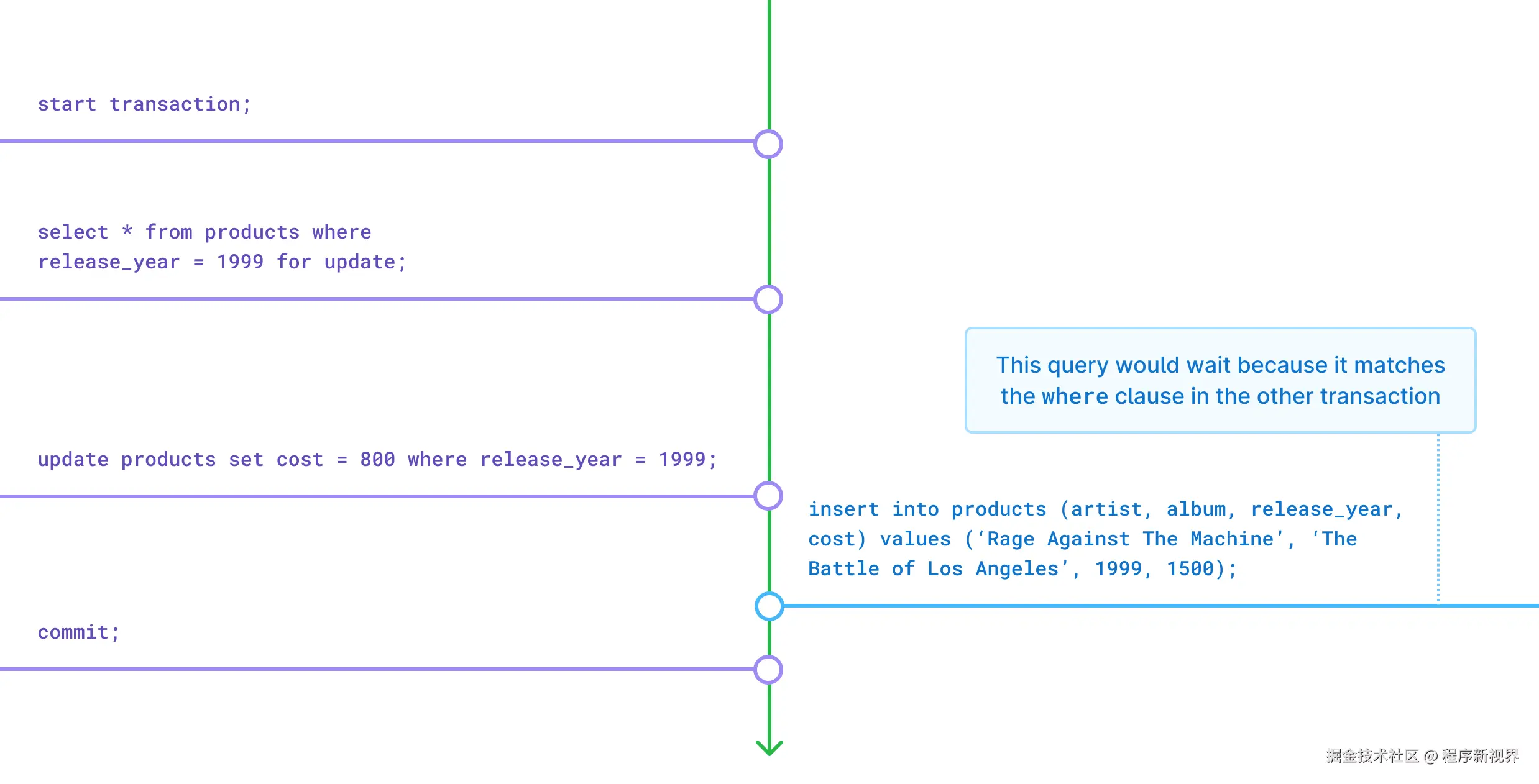 如果员工试图插入1999年的新CD,MySQL会让插入等待: