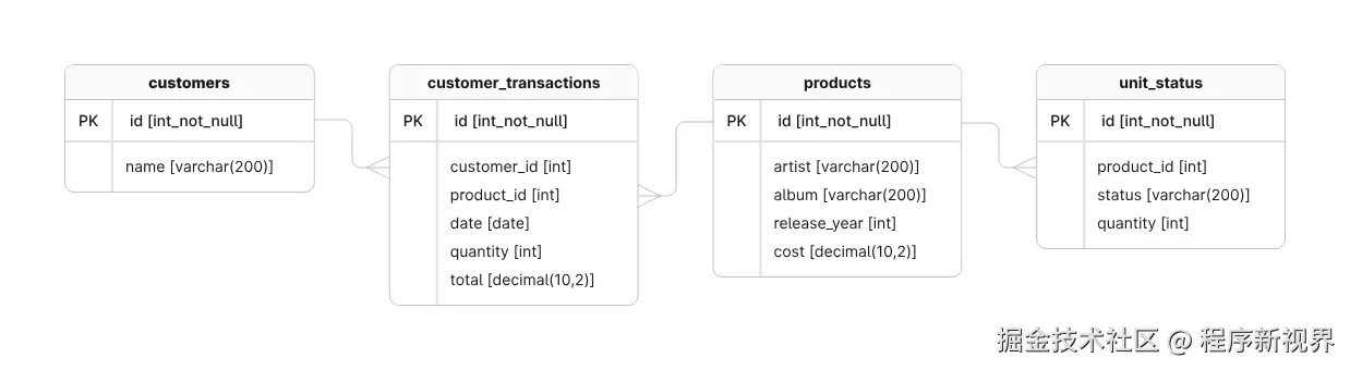 - products:包含每种CD的库存,包括名称、艺术家及可用数量。