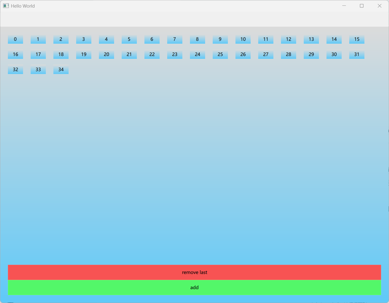 场景:两个按钮,一个按钮点击,在网格中添加一个元素;另一个按钮点击,删除最后一个元素